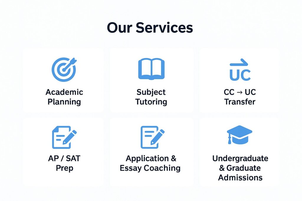 Comprehensive planning, tutoring, and admissions guidance for academic success.